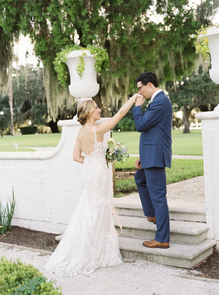 Julia and Chase’s wedding took place in the sunken gardens of Crane Cottage at the beautiful Jekyll Island Club. This Georgia wedding venue is a dream for anyone wanting to marry in a garden surrounded by romantic architecture. For this wedding, we focused on a blue and white color palette with several varieties of blooms.
