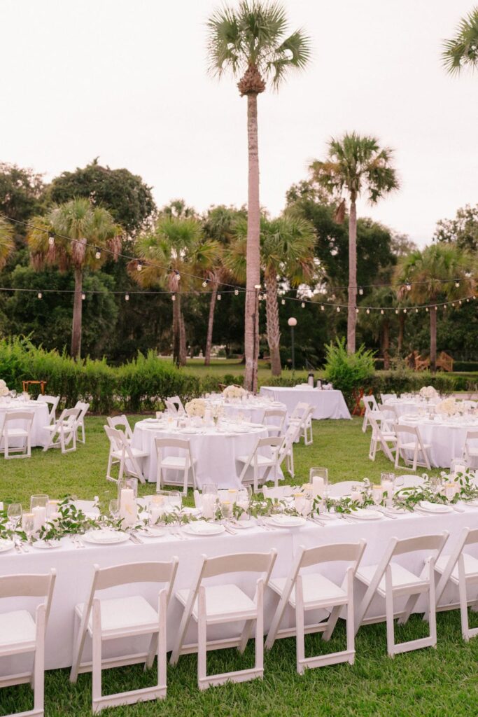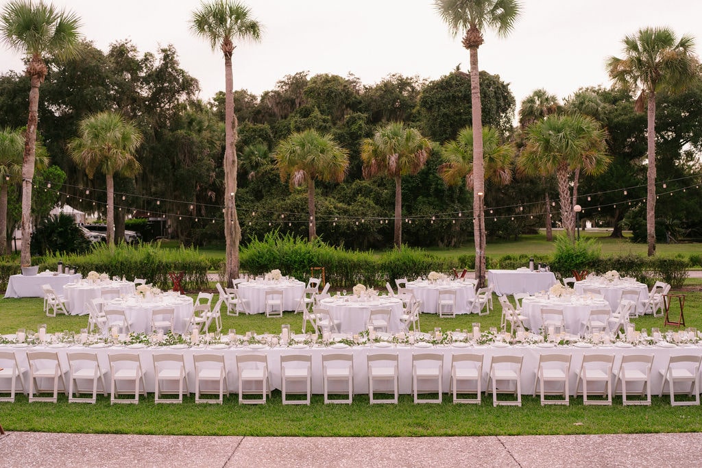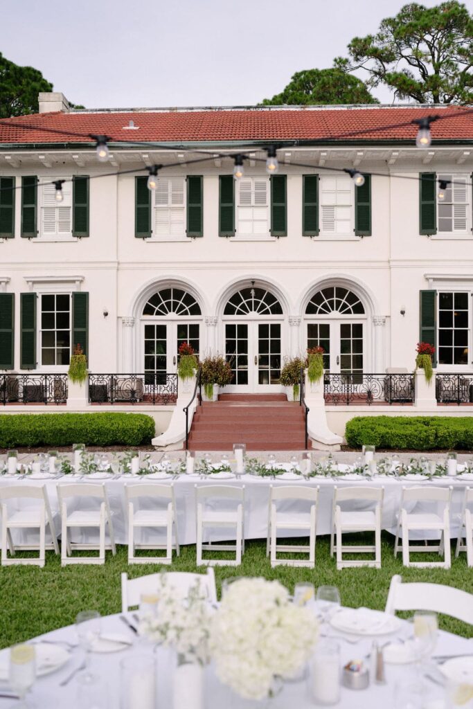 Nestled in the private gardens of the Jekyll Island Club lies Crane Cottage. It is an Italian renaissance style building that is a dream wedding venue for a romantic garden-inspired wedding. Crane Cottage is the perfect place for a southern wedding, with indoor and outdoor spaces for guests to enjoy. The Gray Harper team loves any opportunity to design a Crane Cottage wedding at the Jekyll Island Club. We have designed many ceremonies in the sunken gardens in the past but loved how Emily Burton Designs used the space differently. The planning team opted for a tent in the sunken gardens and the ceremony on the lawn under an old Live Oak tree covered in Spanish moss. Thus making this an completely outdoor wedding.