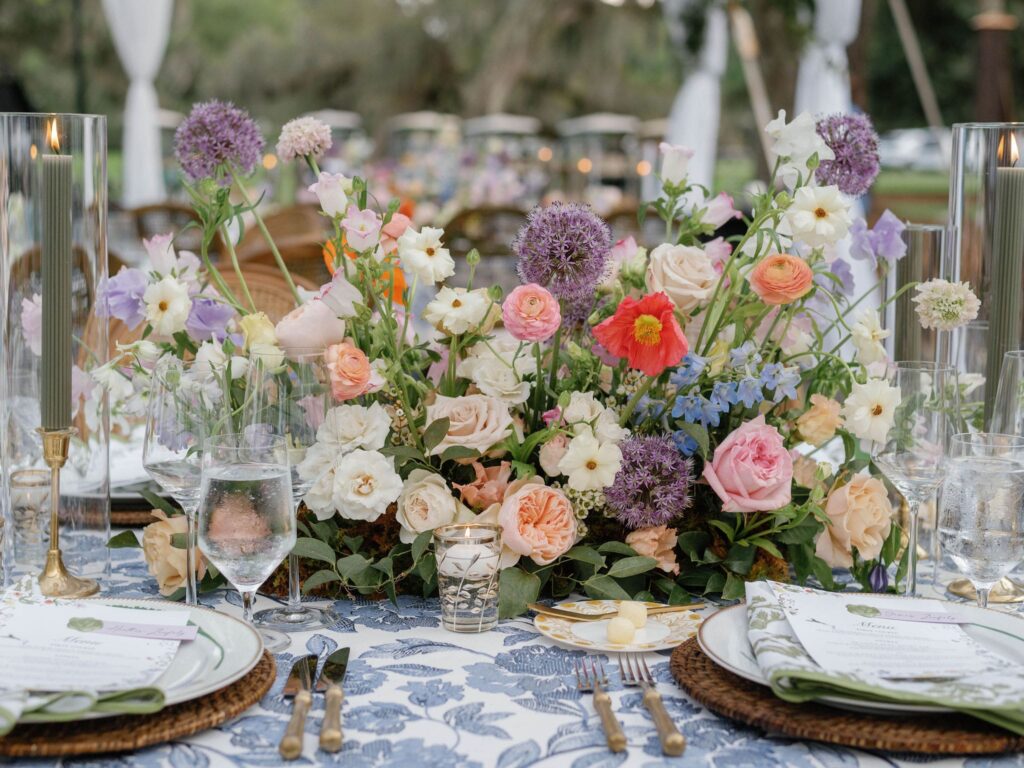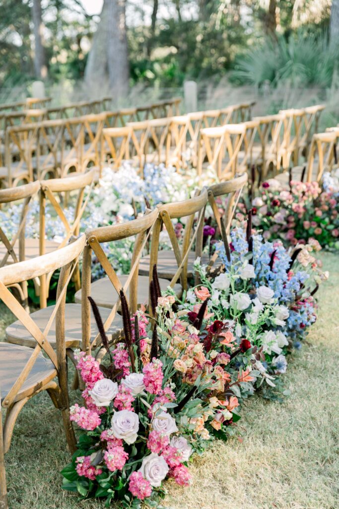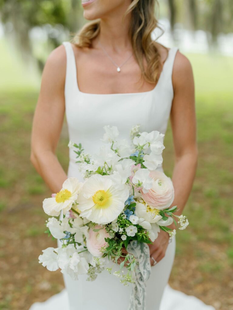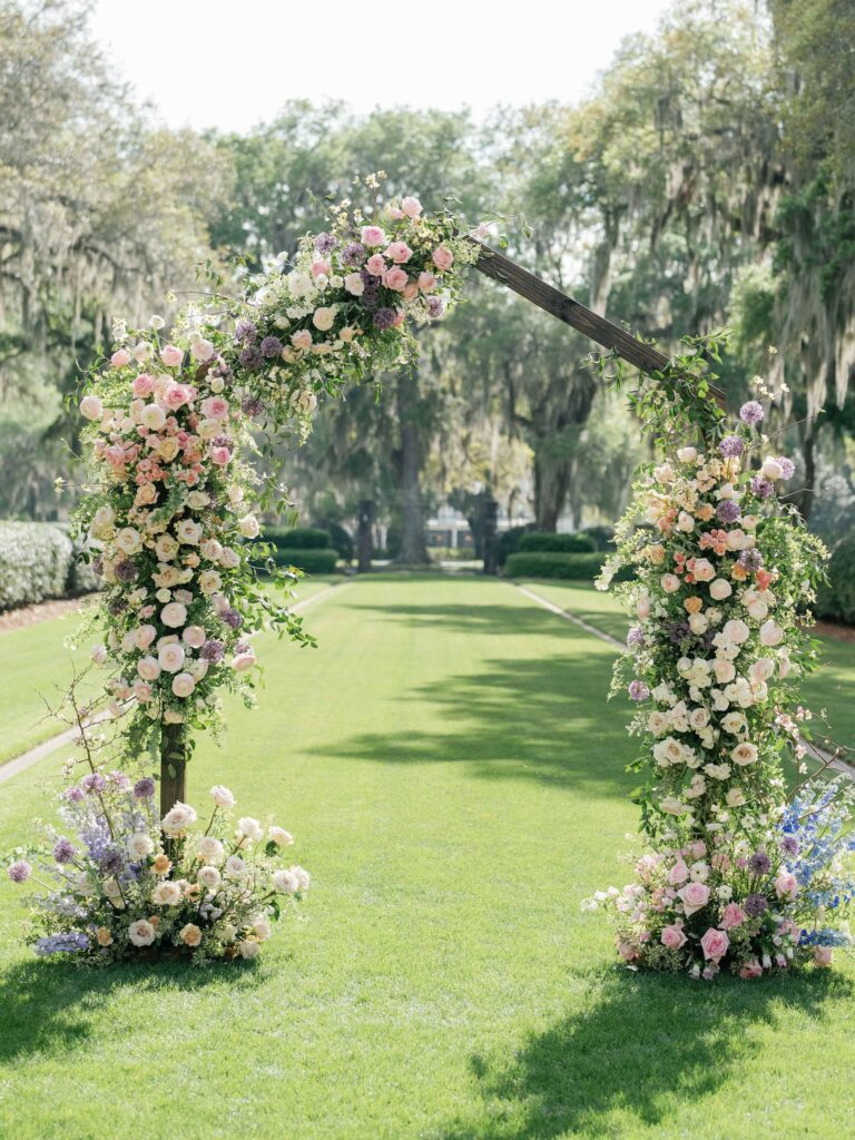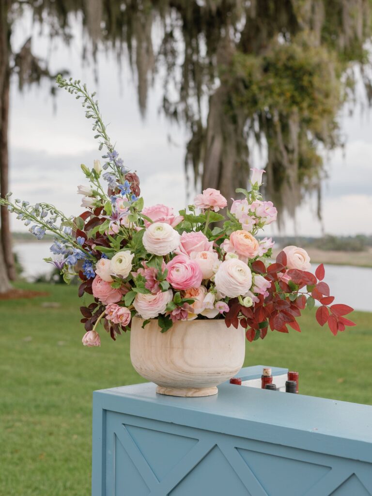 Nick and Julie’s St. Simons Island wedding is where floral dreams were brought to life in a captivating display of colors and elegance. This floral fairytale of a wedding consisted of a beautiful cool-toned color palette that mesmerized guests throughout the celebration. Below we share some highlights of the beautiful blooms that adorned the ceremony and reception spaces, adding an aura of romance and enchantment to this special day.