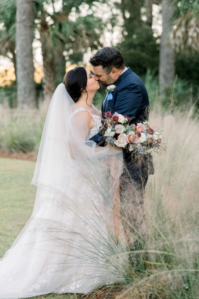 The couple loved the southern setting of this Georgia wedding venue and the exceptional service that the club provides. This ocean club wedding venue provided space for a beautiful garden wedding ceremony and intimate al fresco reception. One of our favorite things about the Jekyll Island Club Resort is the stunning oceanfront views that are perfect for couple portraits during golden hour.