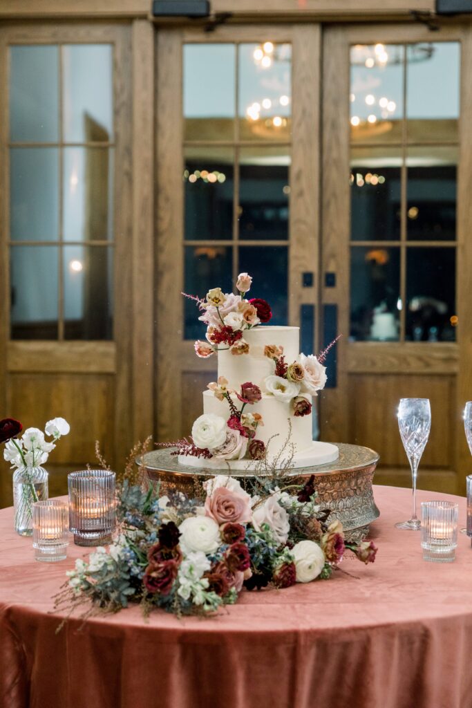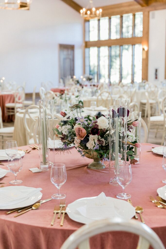 With cranberry, mauve, and blush as the primary hues, the Gray Harper team created a romantic ambiance reminiscent of a fairytale. Our goal was to set the tone of the day and create an atmosphere that would capture the essence of Megan and Jacob’s love story. A touch of gold was incorporated into the design through votives and vases, adding the perfect amount of elegance and sophistication.