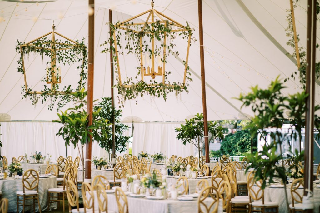 We added Spanish moss to the oversized chandeliers at the last minute, and it tied everything together! Our favorite installations are simple yet make a statement. All of the greenery we added throughout really made the reception feel like a garden and made this couple’s vision come to life! We are so thankful we got to design this event for Cade and Emily!