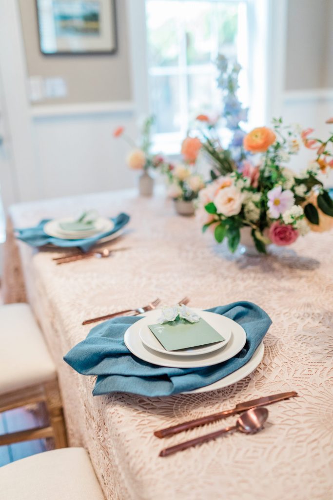 Following the ceremony, the family sat down together at a lovely table styled with Nuage Linens for a delicious post-wedding brunch.