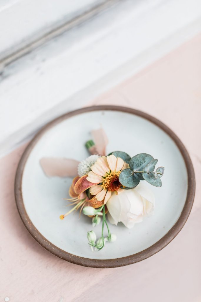 This wedding day, while intimate, was FULL of beautiful details. We kept the boutonnieres simple and sweet with a mix of flowers from our garden, our favorite tiny lilies, garden roses and eucalyptus.