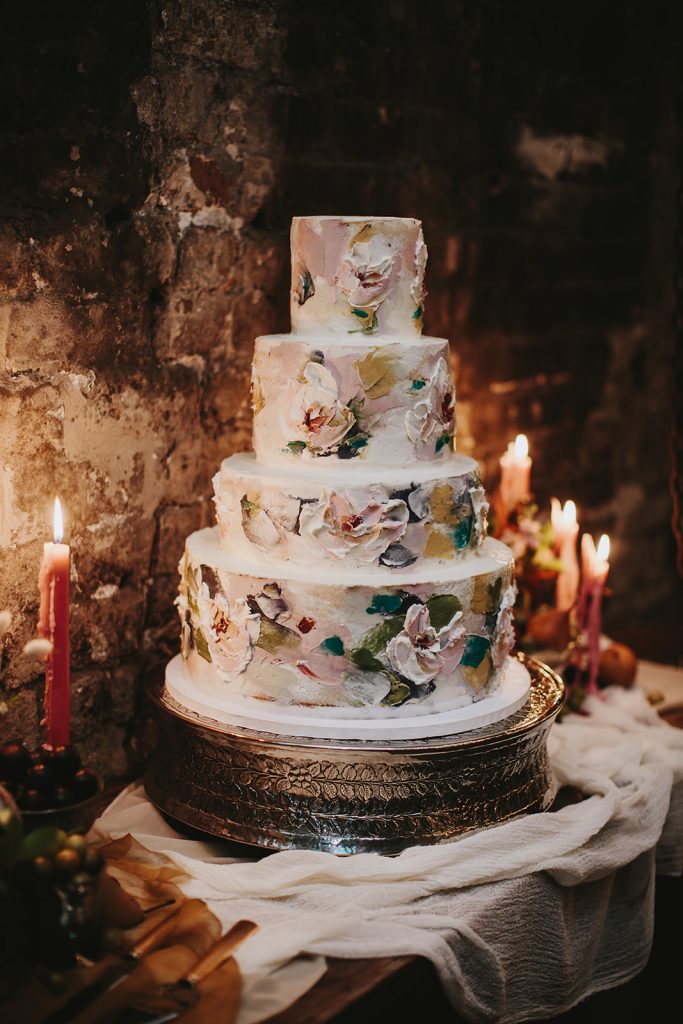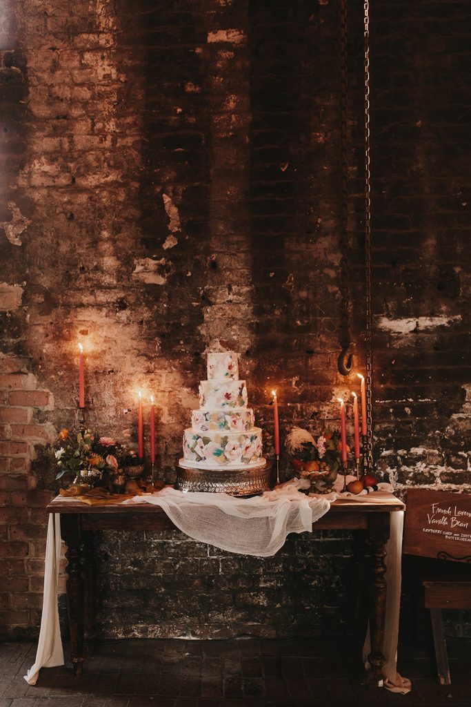 Their wedding design featured a ton of color in a modern and unique way that gave off magical forest vibes. Guests enjoyed cocktail hour and dinner provided by J Thomas Catering and then danced the night away under the twinkling lights! Caroline and Nate’s wedding cake may be our favorite part as it imitated a watercolor painting that played right into the whole wedding design aesthetic.
