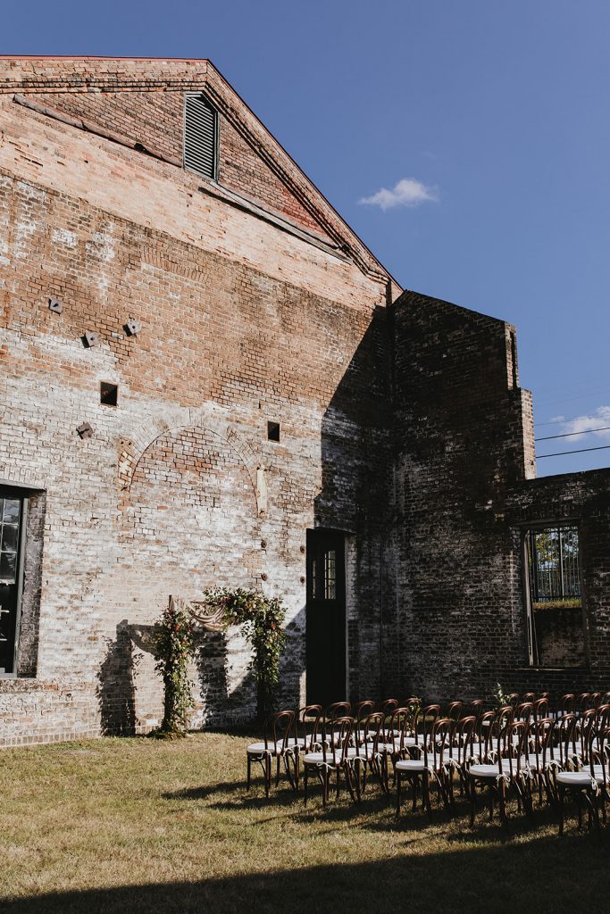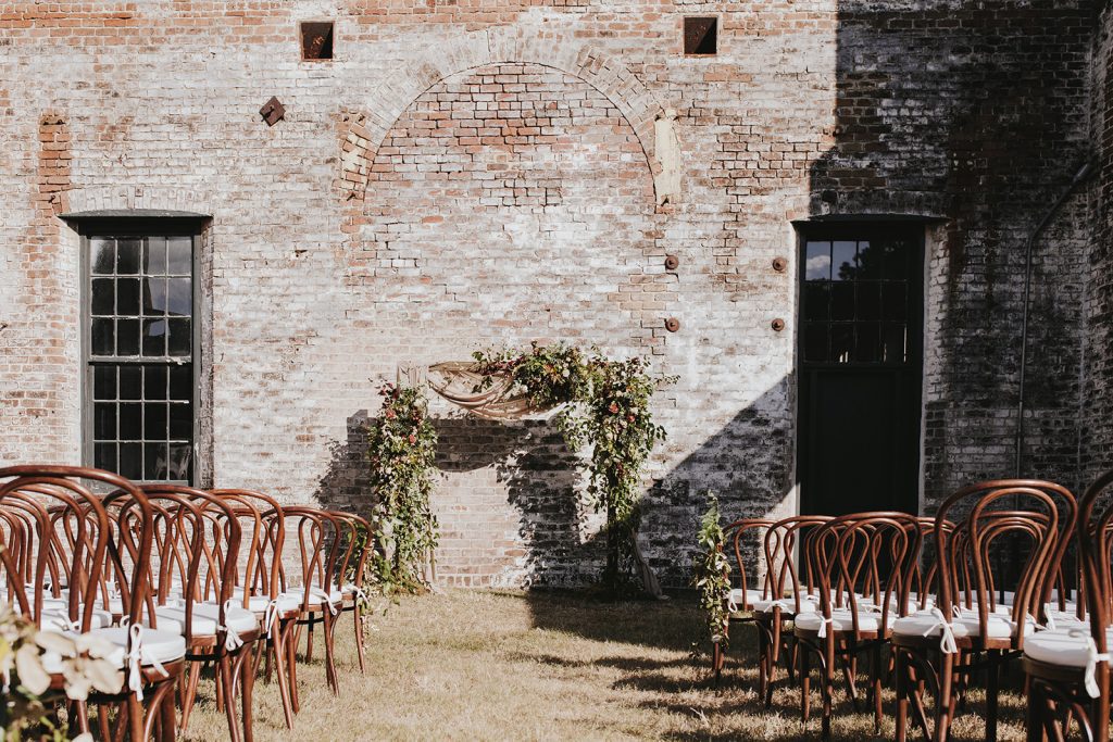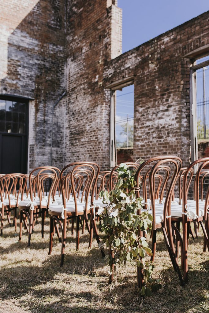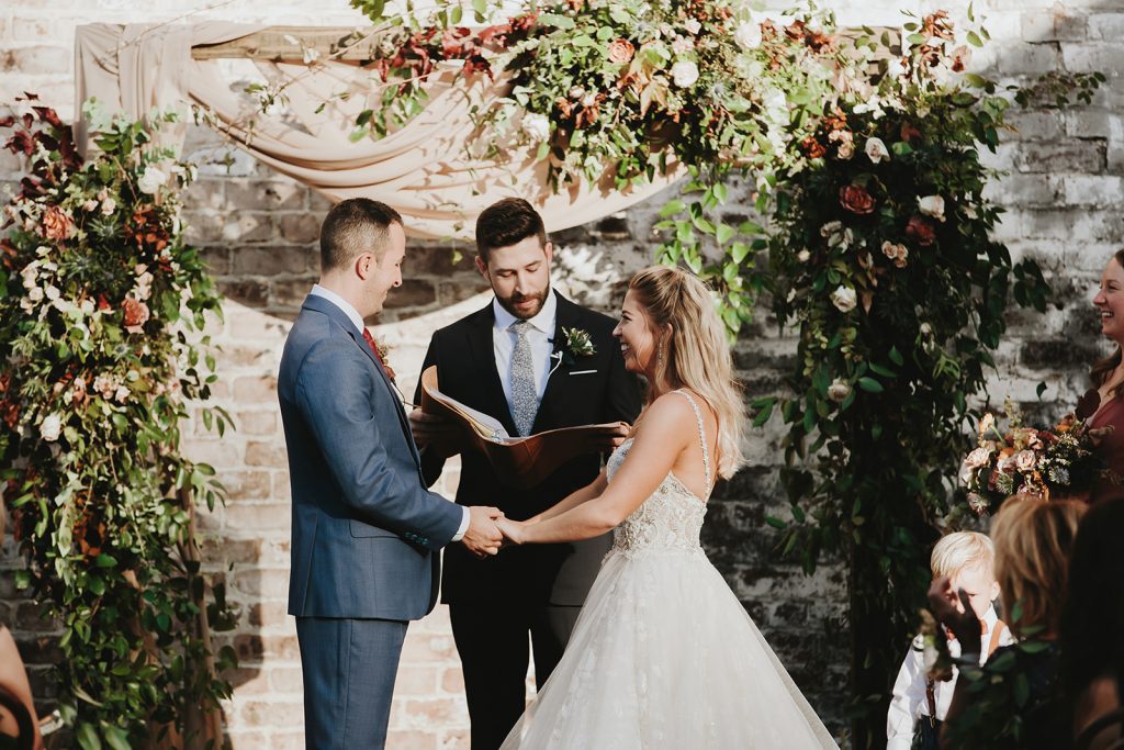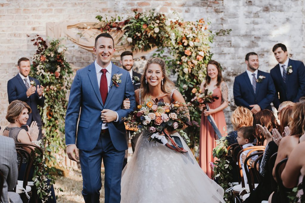 Tracy and Charlie were initially supposed to be married at Victory North, but the pandemic forced them to switch venues to Charlie’s family home on the water in Savannah. While it was a different location, it worked out flawlessly. The ceremony took place overlooking the water, with the most beautiful sunset that popped out after a day of rain. The ceremony arch was a statement piece! It was covered in flowers, with draping ivy and greenery that was tied into the reception.