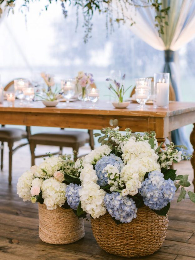 When creating the design, the couple wanted some personal items included. So all of the oyster shells that were scattered around the reception were found by the bride and groom’s parents on their home property! It was the perfect way to tie in their local roots while creating an exquisite design detail.