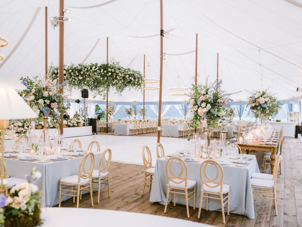 In addition, their color palette incorporated muted tones with pops of burgundy, which played into the romantic vibe of the outdoor venue itself. To see more of this showstopper, see their gallery below.