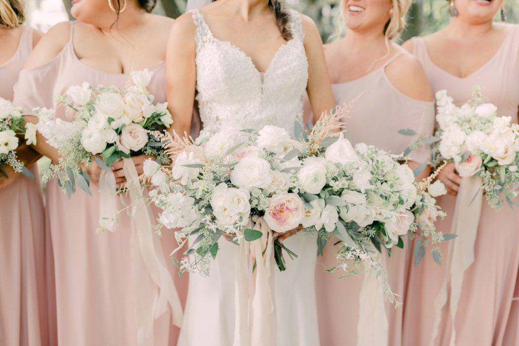 As florists, we love to create unique and stunning personalized designs for each of our couples! When designing the florals for Kelley + Watts Sea Island wedding, we wanted to bring the bride’s all-white floral and tropical vision to life in every floral element possible. Each detail was thoughtfully chosen and incorporated into the design, from the moment guests arrived and saw the statement floral installation to the bridesmaids all white tropical-inspired bouquets. If you are dreaming of a destination wedding in Georgia, we would love to work with you! We love bringing our couple’s unique visions to life through the beauty of flowers!