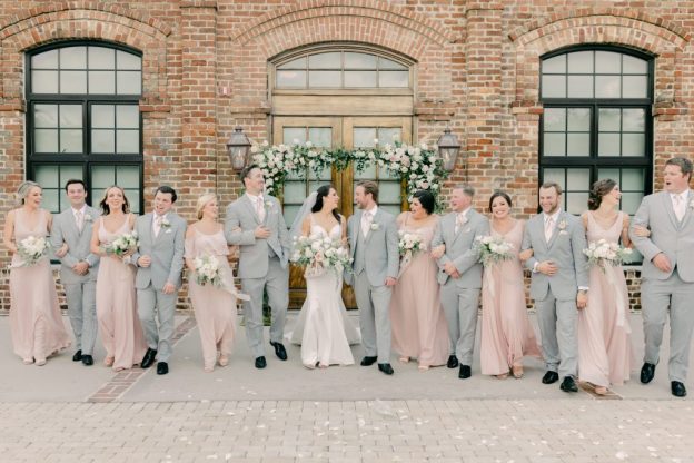 A focal point of the reception was the sweetheart table. The couple sat together at a round table, with large arrangements in front, and Rachel’s bouquet displayed in the center. We also included Rachel’s dream floral arch, which went behind their sweetheart table and added texture and color. It tied the space together perfectly and was later used as a fun photo backdrop later in the night! Here at Gray Harper, we are all about creating a unique experience. We took the traditional brick hall at the Charles H. Morris Center and turned it into a garden! As you plan your event here in Savannah, we would love to create a complete experience customized just for you.
