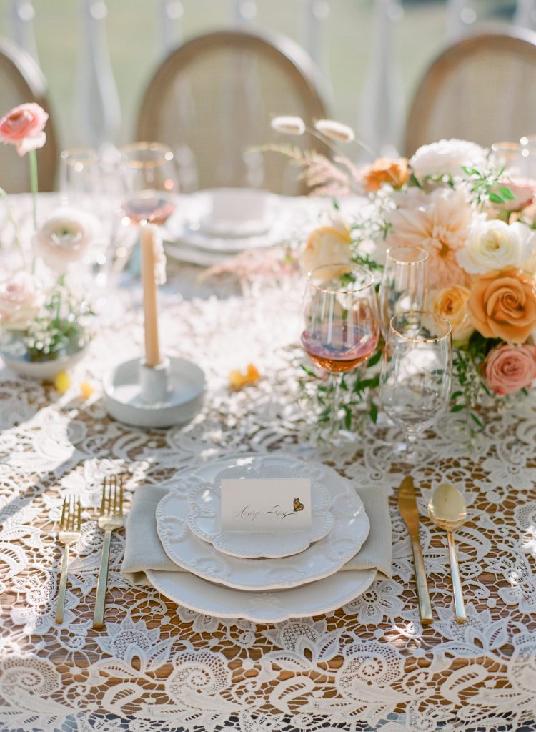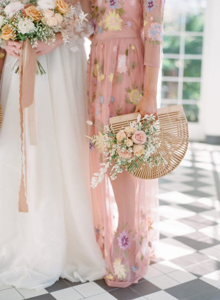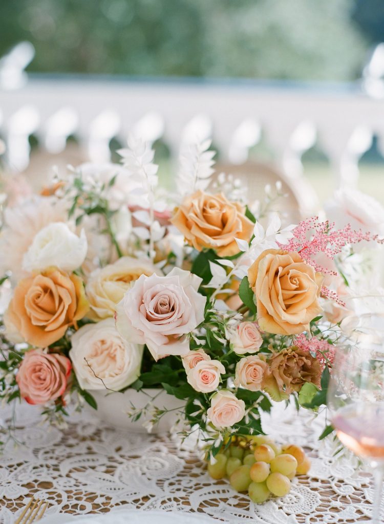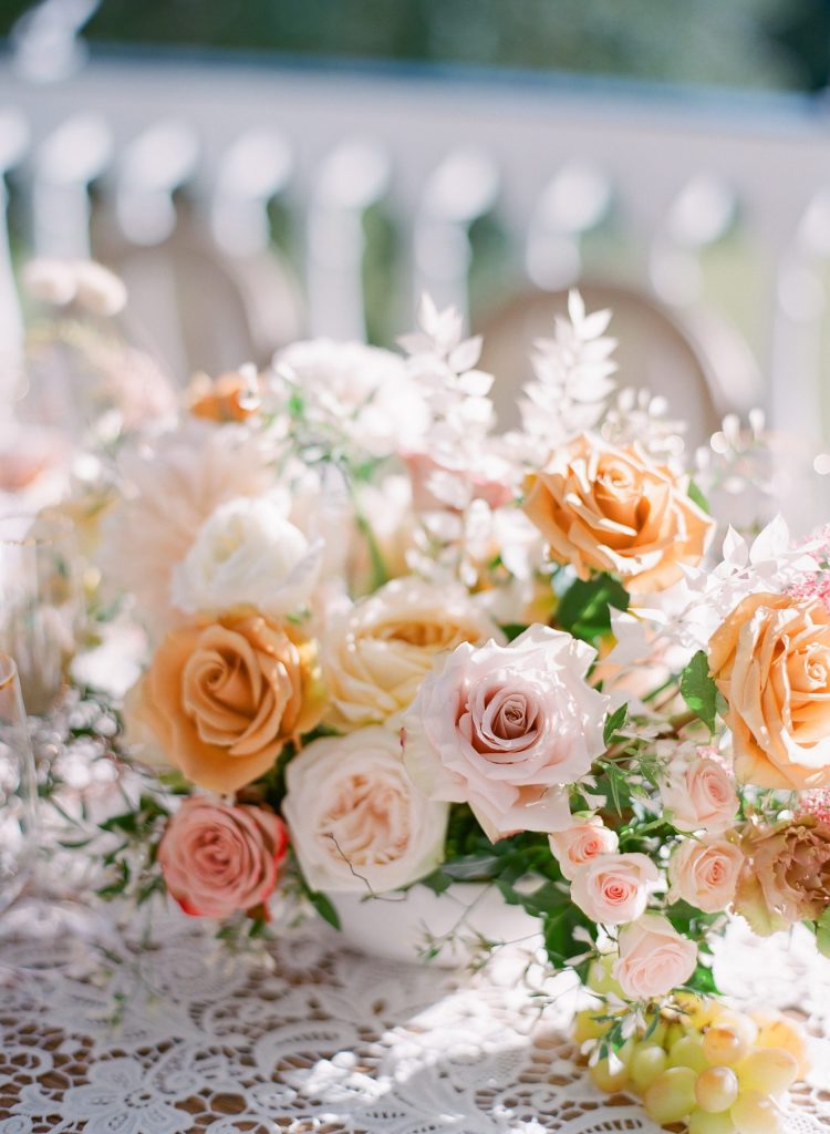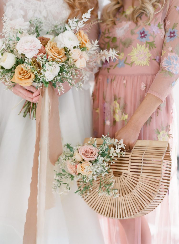 Think “classic southern charm with a twist” – the monarch butterfly was our main source of inspiration for designing the wedding flowers in this Charleston Weddings Magazine feature at Lowndes Grove. Gray Harper owner Andrea wanted the bride’s bouquet to look light and airy – which it totally did! In person, the blooms moved ever so slightly with the wind. We added a dainty foraged shrub to add the perfect amount of femininity without being too “girly.” We kept the traditional colors of spring but mixed in more subdued tones for a sophisticated look. The brown Lisianthus and Combo Roses toned down our spring color palette. Minimal greenery allowed the blooms to stand out since this Charleston venue was already so lush and green. Earth-toned pottery and ribbons rounded out the wedding design.